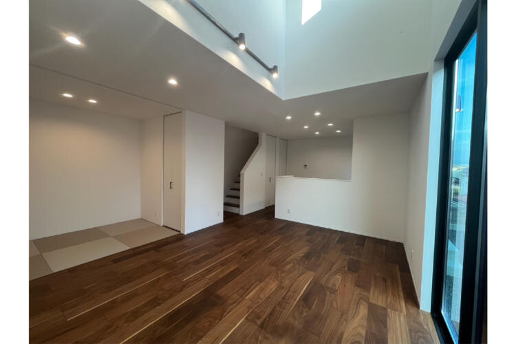 LDK横の畳コーナーは、くつろぎやお子さまの遊び場に最適。キッチンからはLDK全体を見渡せる安心設計です。
