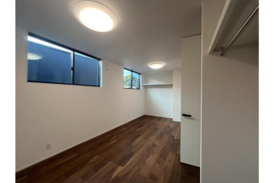 吹き抜けのある明るい2階ホールが開放感を演出し、主寝室にはウォークインクローゼットを完備。さらに物干しスペースや納戸も備え、家事動線にも配慮しています。